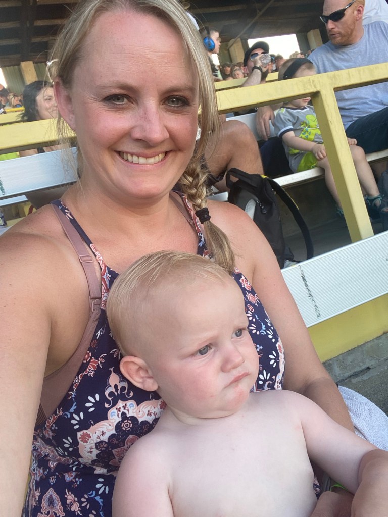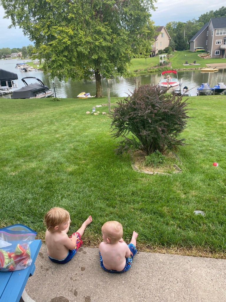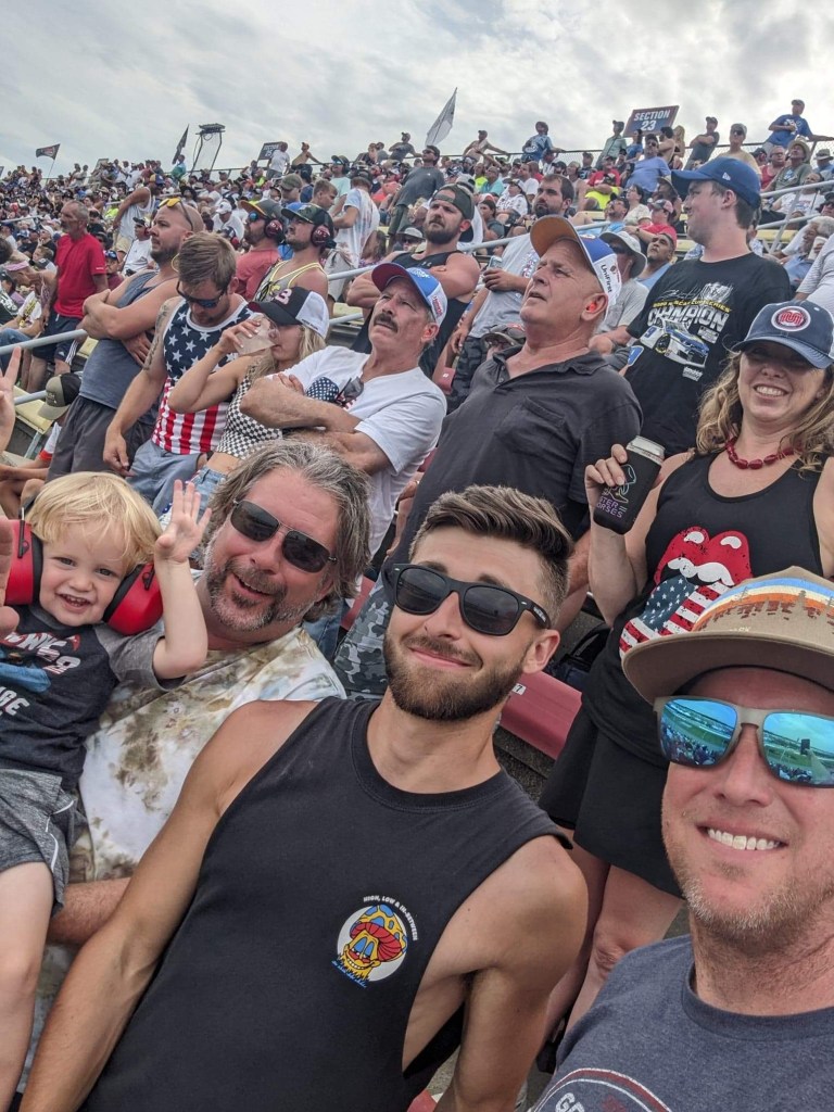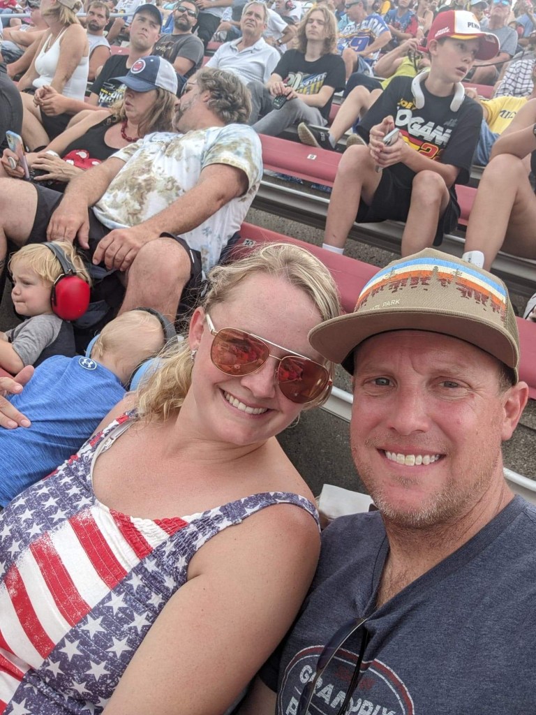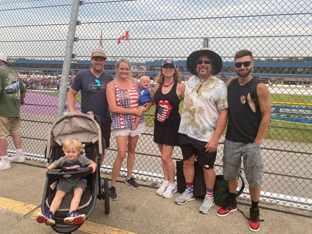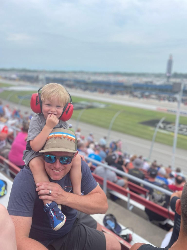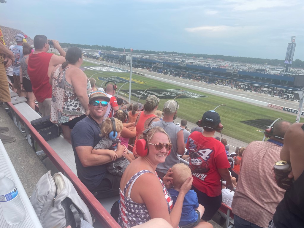Sunday was the big day of the Michigan Nascar races! The track is literally 5 minutes from their lake house. The races were supposed to start at 3pm and a monsoon downpour with thunder and lightning started so all spectators were huddled under the bleachers to wait it out. The races ended up starting about 2 hours late and it was quite the adrenaline rush! As the cars go by you could feel the rush in your chest and the extremely loud VROOM of the passing car… it was intense! Carter wasn’t a fan of the noise or wearing the ear headphones so mommy did a lot of walking (4 miles total) with him in the stroller to entertain him… Bentley loved them and hung with daddy, Jesse, Amie, and their nephew Matt the whole race. We will have to return when they’re a little older and they will enjoy them even more! The winner of the day was Kevin Harvick after a big crash took out a bunch of the top guys. It was an entertaining race! 🏁🏁🏁