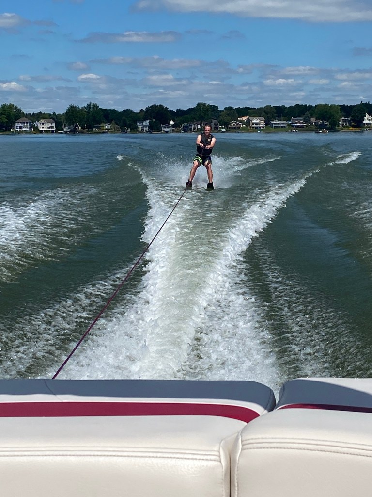 Wow did our friends, Jesse & Amie, spoil us all week in Michigan! They’re great friends from back in Oregon who live in Bend and spend summers at their lake house. They have such a great spot on Lake Columbia in Brooklyn, Michigan. We arrived Saturday afternoon and they were ready to show us around the lake on the boat and play on the toys!