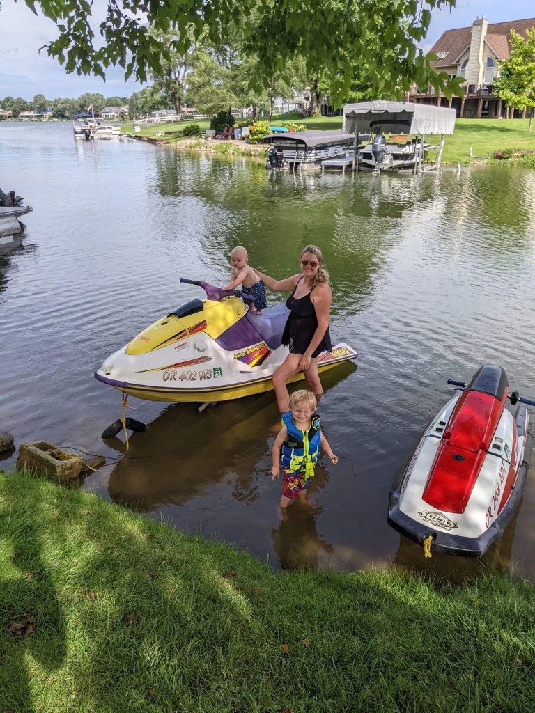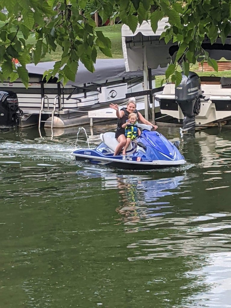 Monday was recovery day after a day of fun in the sun at the races. We relaxed, played in the lake, and Ash took Bentley on his first jet ski ride!