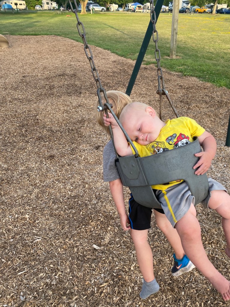 After dropping Kev off at the airport to fly home to Oregon ✈️ we found some NY Style Pizza! 🍕yummy!!! Ash & Gma then took the boys to the Niagara Falls Aquarium to see the sea Lion show, penguins, fish, sharks, and more. The boys loved it!! It was then nap time on the drive back to the campground for a relaxing evening of park playtime, dinner, and movies before bed.