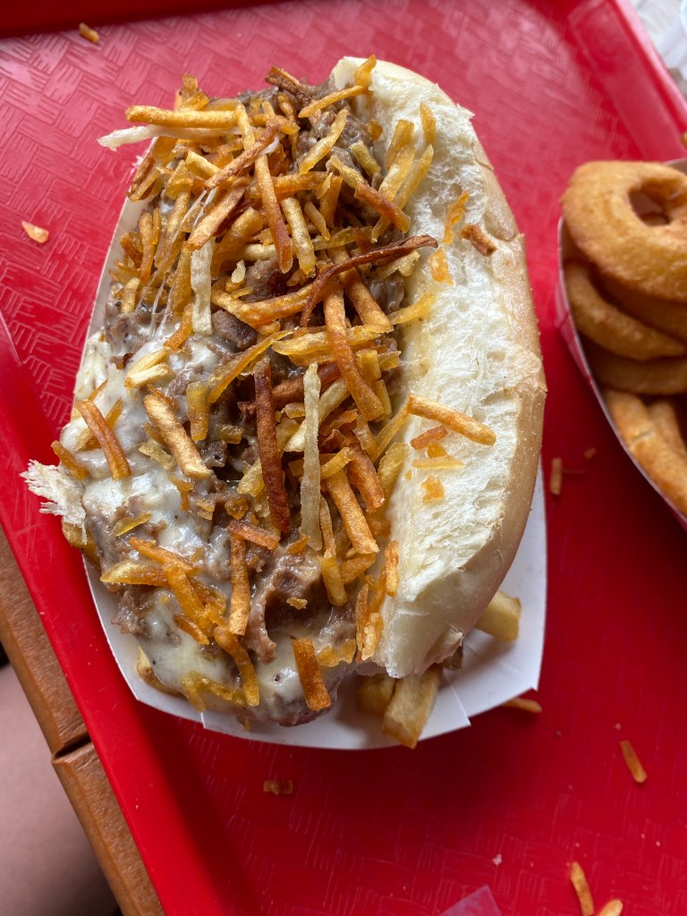 Tuesday was our full day of exploring Niagara Falls and of course it started raining on the way! So we detoured to explore some small towns and found a super cute one named Lewiston just north of Niagara Falls. We ended up going to a lunch spot called The Silo which had been featured on Man vs Food. I ordered the famous “Haystack” sandwich but in the kids size and it was still enormous plus you got a free ice cream cone with it! The sandwich was pretty much a Philly cheesesteak with hash browns on top… odd but it was delicious!!
