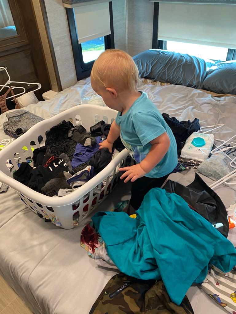 The next day we biked over to the beach again for some more swimming. Kevin’s dad joined us for a quick lunch after the boys naptime then we got all our laundry done after finding a FREE washing machine! Haha! That evening we ventured out for dinner to a yummy locals spot called Blue Coast Seafood Grill then had a late night venture to the campground playground!