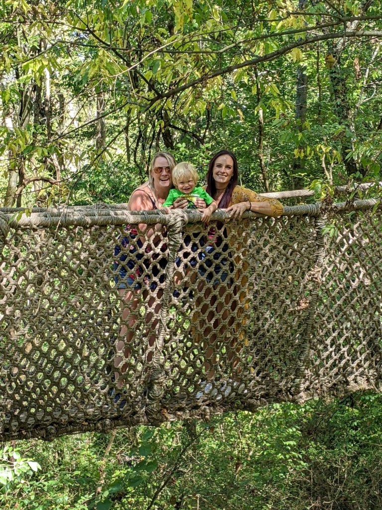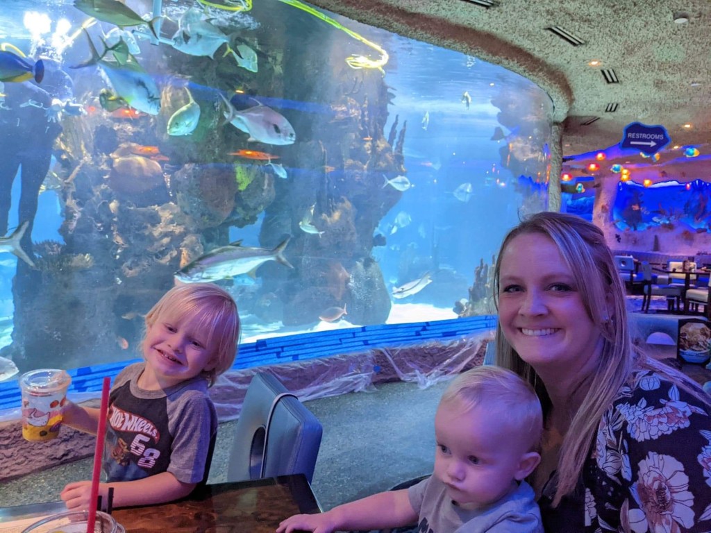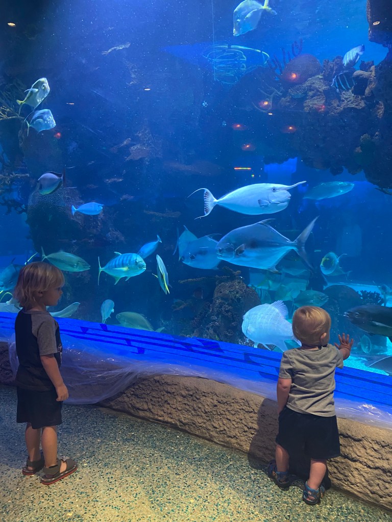 The following day was a long day of recovery… ouch😵🥴! Syd flew out and we decided Nashville was so fun that we extended two more nights, however the campground was full so we had to move to the one next door. We had a relaxing day at the new campground playing on the bouncy houses and playground. Our last full day in Nashville was a fun one going to an aquarium restaurant for lunch- the boys LOVED it!! Food was ok but the entertainment was great! We then met up in downtown with Alex & Tai to walk around the park near their house, grabbed drinks then dinner and had some great convos at their condo. So wonderful to spend a few fun days with them and get the locals tour 🤠🎉